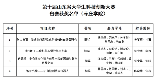 近日,在第十届山东省大学生科技创新大赛决赛中,beat365官网参赛团队共夺得山东省银奖1项,铜奖3项,这个成绩是近年来此项赛事的新突破。