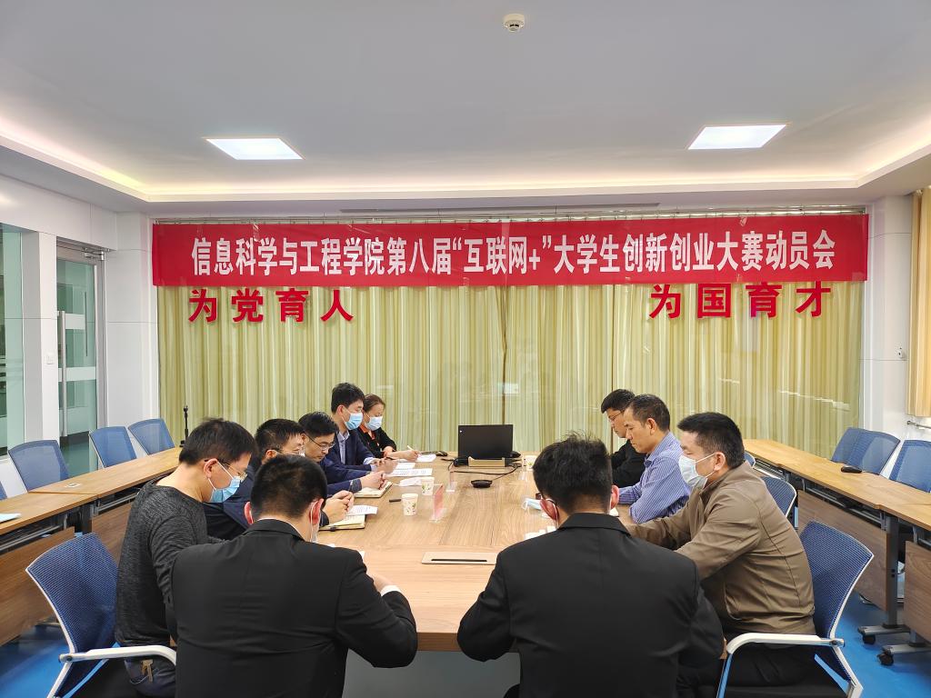 4月27日下午,信息科学与工程学院召开第八届“互联网+”大学生beat365英国官方网站大赛线上动员会,学院师生全员参加会议。动员会主会场设在墨子楼二楼会议室,beat365英国官方网站学院院长王明高、信息科学与工程学院党政领导、部分获奖教师和学生代表在主会场参加动员会,党总支书记姬广华主持会议。