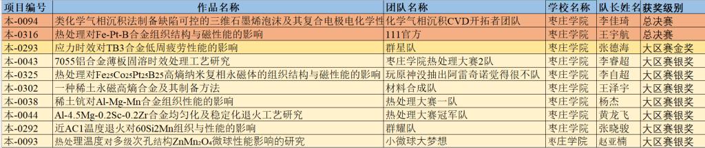 总决赛时,比赛队伍提前抽取决赛题目,并准备8分钟的PPT,1名队员主讲,小组其他成员共同参与答辩,专家评委针对项目提出问题,选手即时回答,并从选题与内容、成果与创新、理论与方法等方面对作品进行评判,最终的成绩评定为大区赛25%+总决赛75%。经过激烈的角逐,由任衍彪和于延新老师指导的李佳琦、孙馨悦、孙乾威、张宇学生团队答辩项目《GCr15轴承的热处理工艺及质量检测》和马殿国老师指导的王宇航、张瑞雪、刘赵睿、梁雨欣学生团队答辩项目《38CrMoAl曲轴的热处理工艺》突出重围,获得了总决赛二等奖。