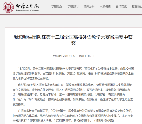 指导老师将择优选出3名学生组成“中原工学院跨文化团队”代表学校参加第五届“外教社杯”全国高校学生跨文化能力大赛河南省复赛。
