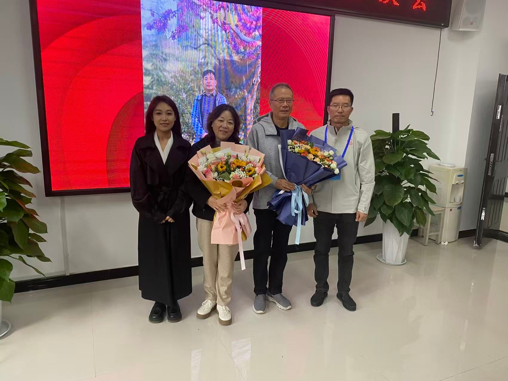 卢世海介绍与会教师、校友。校友代表向参会的退休教师敬献鲜花并致以最诚挚的祝福。