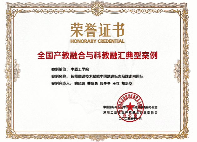 11月14日至16日,第二十七届中国国际高新技术成果交易会(简称“高交会”)暨2025第二届产教融合与科教融汇论坛在深圳举行。会上,由学校研究生处推荐,今年会院长姚晓鸣教授团队完成的《智能翻译技术赋能中国地理标志品牌走向国际》产教融合案例,从全国586个案例中脱颖而出,成功入选“全国产教融合与科教融汇典型案例”并在高交会上展示,吸引了与会专家、学者及产业界代表的广泛关注。