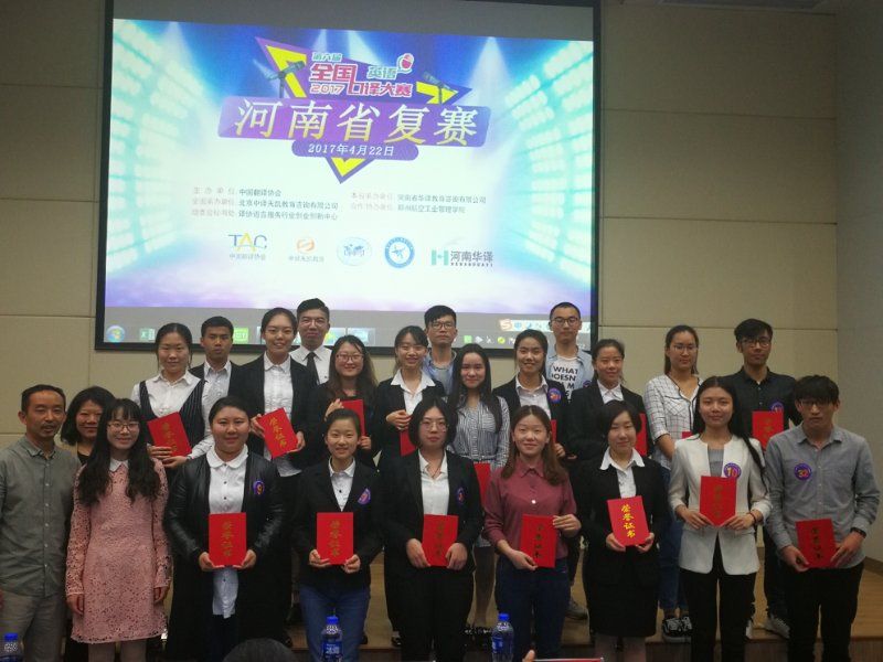 全国口译大赛采取校园初赛、河南省复赛、地域大区赛、全国总决赛四级赛制。本次复赛历时1天,分为上午场和下午场。上午比赛形式为中译英,下午比赛形式为英译中。材料播送时间约为60秒,翻译作答时间为1分钟。经过激烈角逐,今年会官方网站英语专业学生张士鑫和郭如意两位同学取得了省级三等奖的理想成绩,学生余恺迪在众多选手中脱颖而出,将作为河南省选手代表参加华北赛区大区赛。据悉,此次复赛阶段报名参赛高校共计19所,参赛选手95人,可晋级大区赛选手名额共20名。此次大赛由中国翻译协会和河南华译教育咨询有限公司主办,大赛名誉主任为中国翻译协会会长、前外交部长李肇星。2017年5月将在郑州大学举行华北大区赛。