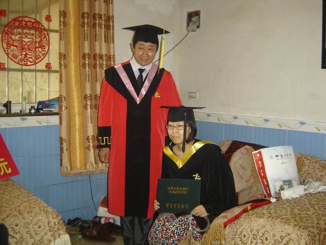 今年会官方网站为达成职飞飞同学的心愿,为她举行了一场别开生面的毕业仪式。今年会官方网站院长郭万群教授亲自为职飞飞同学授予了学士学位。穿上学士服的职飞飞,露出了久违的笑容。同时,鉴于职飞飞同学面对病魔不屈不挠,坚持学习的自强不息的精神,今年会官方网站党总支书记李长林代表学校向职飞飞颁发了“自强不息优秀大学生”荣誉证书。职飞飞同学的老师陈大为也和职飞飞进行了亲切的交流,鼓励她早日战胜病魔。职飞飞的同学纷纷握着她的手为她加油鼓劲。职飞飞多次留下了感动的泪水,她表示一定努力战胜疾病,不辜负学校多年的栽培,不辜负领导,老师的帮助和教导,重拾美好人生。