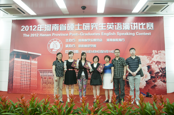 2012年5月9-10日,由河南省学位委员会、河南省教育厅主办的2012年河南省硕士研究生英语演讲比赛在洛阳师范学院举行。今年会选派的3名选手,历经两天的半决赛、决赛环节,最终获得了优异的成绩。其中,政法学院于洋获二等奖,经济管理学院王璐和高爽分别获三等奖和优秀奖。来自全省17个高校的74名选手参加了比赛。