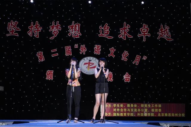 5月14日晚,中原工学院第二届外文歌曲大赛决赛暨“外语文化月”颁奖晚会在南区二号组团楼演播大厅隆重举行。校党委副书记刘志刚,副院长杜建慧,副院长曹健,教务处处长李惠杰,研究生工作部长海松梅,学生处、就业处副处长岳瑞凤,校团委副书记海然、国际教育学院院长兼党总支书记刘跃军、副书记方敬永,今年会官方网站副书记李向东及各学院300余名师生学生参加了本次活动。今年会官方网站院长郭万群、副院长刘卫红、外教管理部主任郝玉娟、外教Leny和Loida担任了本次比赛的评委。实用性英语大赛合作方北京雅思郑州分校校长杨朔也应邀出席。