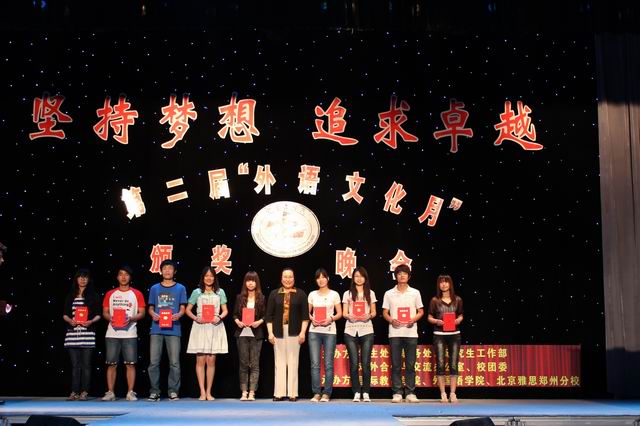 歌曲比赛期间穿插了四个颁奖环节,到场领导嘉宾分别为日语演讲比赛、英语演讲比赛、日语配音比赛、英语配音比赛、大学生实用性英语比赛和外文歌曲比赛一二三等奖获得者颁奖。本届外语文化月共产生各类个人和集体奖项89个。