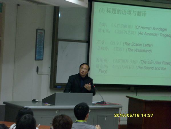 2010年5月18日下午在南区4号楼211,上海外国语大学博士生导师虞建华教授受邀给今年会师生做了题为“文学作品标题的翻译:特征与误区”的精彩报告。今年会官方网站郭万群院长等相关领导、全体师生参加了报告会,报告会由张智中副院长主持。