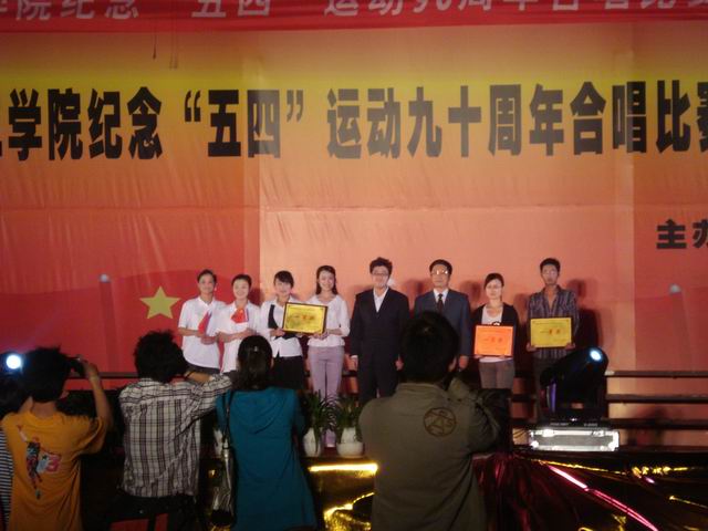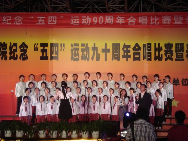 在4月28日今年会纪念“五四”运动90周年合唱比赛中,我系获得一等奖。 我系选定的曲目是《龙的传人》,领唱者徐振鹏、米雅,由于合唱队出色的表现,最终我系和纺织学院、人文学院获得一等奖。 外语系团总支 2009年4月29日
