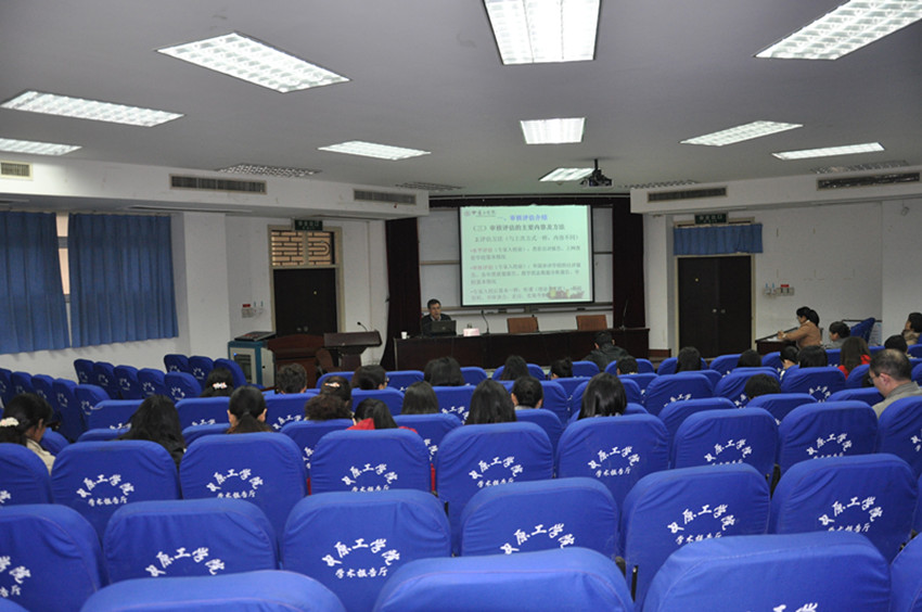 李主任首先介绍了今年会10月份即将到来的审核评估的主要内容和方法,包括四个度和六个审核项目,接着就学院如何做好准备,如何自评,每位任课教师如何在主要教学环节做好准备等进行了强调和解释。李主任还依据学校督导专家听课标准、教案编写规范、考试命题、毕业论文设计检查工作要点以及容易出错的地方,结合今年会教学环节中曾出现的案例,对教师们的日常教学工作进行了指导。李主任治学严谨,讲话幽默风趣,大家深感受益匪浅。