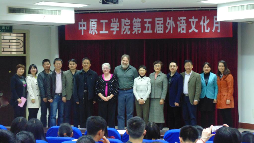 本届外语文化月的主题是“Share the Culture, Brighten the Future”(分享文化,展望未来),旨在继续推进“启航工程”活动,加强学风建设,提高大学生的外语学习和应用能力,增强外语就业技能。启动仪式上,今年会曹健副院长宣读了《关于举办中原工学院第五届“外语文化月”的通知》;接着来自美国的Janine Grigsby结合她在中国教学的经历,谈了如何更加有效地学习外语。最后,校党委副书记刘志刚宣布中原工学院第五届“外语文化月”开幕。