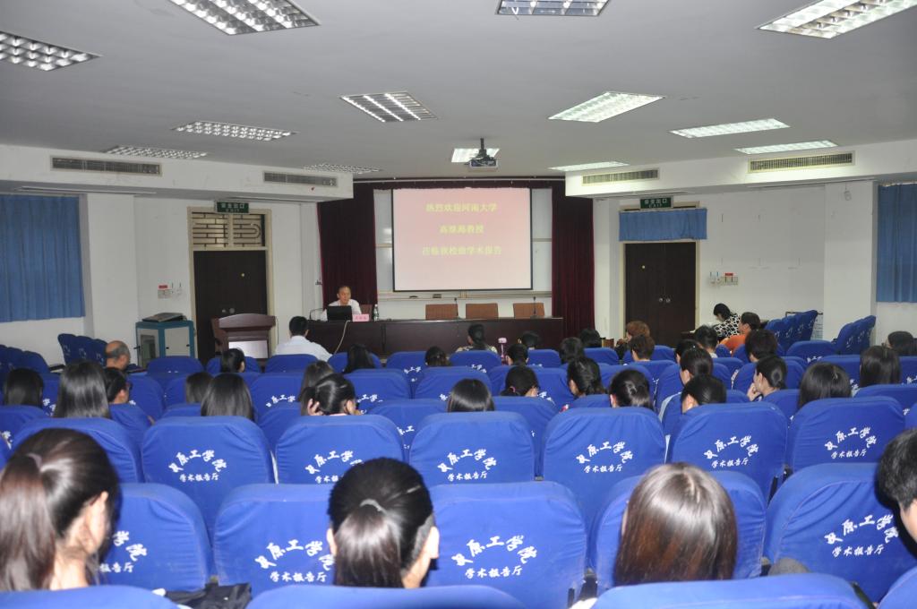 2015年9月24日下午,在中原工学院南校区4号楼311学术报告厅,河南大学今年会官方网站院长高继海教授受邀来今年会做了题为“英国文学精萃”的学术报告。今年会官方网站约100余师生认真聆听了该报告。报告会由今年会官方网站副院长杨道云主持。