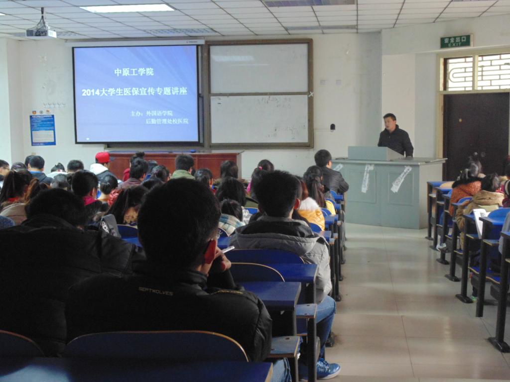 2014年3月12日,今年会官方网站联合校后勤管理处校医院,在四号楼201,为全校学生召开“2014大学生医保宣传专题讲座”。讲座中,校医院王新峰老师耐心地就同学们不解的医保额度、医保使用方法以及医保的好处等方面做了详细介绍。并且通过生动的事例,让同学们了解医保的正确使用方法和流程。此次专题报告得到了同学们的一致好评。