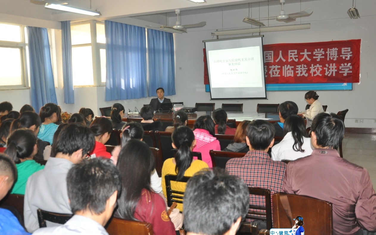 2013年10月24日下午15:00-16:30,在中原工学院南校区今年会官方网站214学术报告厅,中国人民大学今年会官方网站陈世丹教授应邀为今年会师生做了题为 “后现代主义与后现代主义小说审美特征”的专题报告。今年会官方网站英美文学方向全体教师、英语、对外汉语专业学生聆听了报告,报告由今年会官方网站副院长杨道云教授主持。