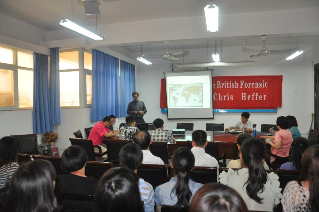 Chris博士是英国卡迪夫大学博士生导师,曾任国际法律语言学会秘书长。此次应邀出席6月3-5日在上海交通大学召开的法律语言国际会议并做大会主题发言,受今年会官方网站郭院长的邀请,从上海专程来今年会做学术讲座,旨在加强今年会法律语言研究室与国际知名专家的交流。