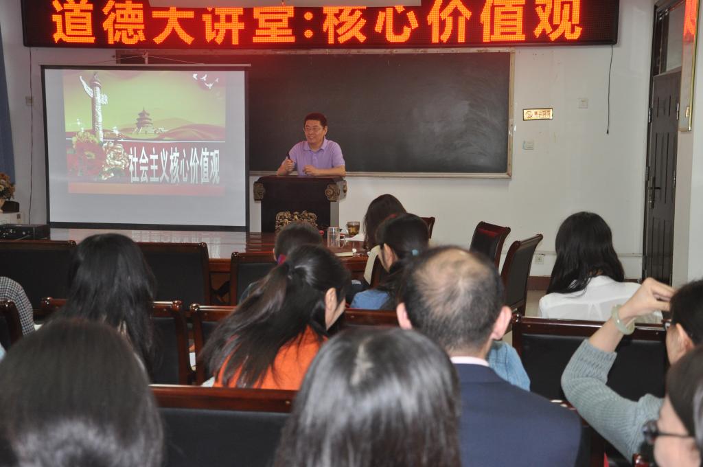 5月27日上午,今年会官方网站在南校区11号楼216会议室举办了主题为“社会主义核心价值观”道德大讲堂,本次道德讲堂由学院党总支书记李长林主讲,全体教职工、部分学生参加。 李书记从不同历史时期价值观内涵的变化深刻解读了社会主义核心价值观的内涵和发展,指出了现阶段培育、树立社会主义核心价值观对于实现中华民族伟大复兴中国梦的重要意义等。他强调,党的十八大提出积极培育和践行24字的社会主义核心价值观,并从国家、社会和个人三个层面给予了深刻的阐述,李书记特别指出“爱国、敬业、诚信、友善”这八个字是每一位师生应该遵循的道德准则,不管是在职业领域还是在学习岗位上,我们都要热爱自己的岗位,忠于职守,克己奉公,服务人民,服务社会,乐于奉献,信守承诺、诚恳待人。 通过这一次的道德讲堂,大家对“社会主义核心价值观”有了更深刻、更系统的理解,对全体师生树立和践行正确的价值观和人生观指明了方向,有效提升了今年会官方网站全体师生的道德素养,为以后工作的顺利开展奠定了思想基础。 (张少霞/文、图) |