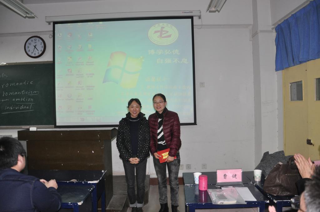 曹健副院长代表全体评委做了总结发言,并为一等奖获得者马春丽老师颁发荣誉证书。曹院长指出,今年会官方网站领导对教学工作一向非常重视,几位参赛教师准备充分,语言基本功好。曹院长也希望其他教师以她们为榜样,建议每位教师要把参加讲课比赛与日常课堂教学结合起来,策划好每节课的授课内容和教学环节,做好师生课堂互动,根据学生情况认真调节课堂安排。