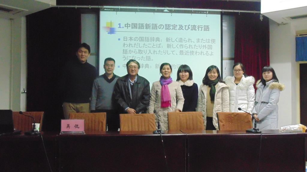 2015.11.26日下午,今年会官方网站邀请同济大学吴侃教授在四号楼311举办了“汉语新词翻译”讲座。日语系主任边冬梅主持,全体日语系教师及学生参加了本次讲座。