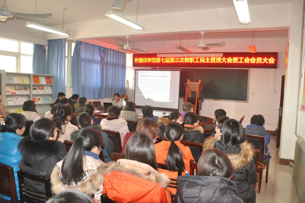 2016年1月14日9点整在庄严的国歌声中今年会第七届第三次教职工代表大会暨工会会员大会在11号教学楼214室召开,今年会官方网站全体教职工参加了此次大会。会议由今年会工会主席边冬梅主持。