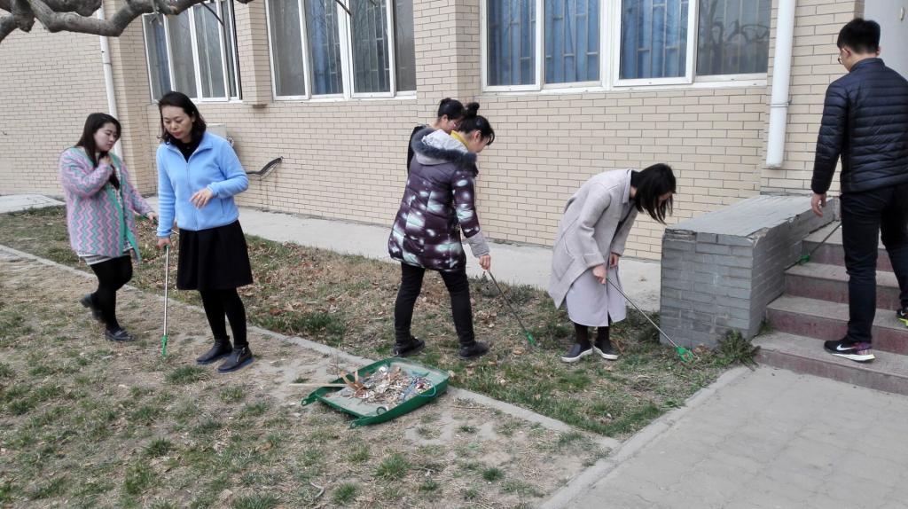 简单的任务分配后,我们对11号教学楼前的草坪进行了彻底清理,教师们积极清理垃圾,不怕脏,不喊累,相互配合,草坪深处均已不见塑料袋,瓜皮纸屑、烟头的踪影。大家也从实践中体会到了“学校是我家,清洁靠大家”的深刻含义。