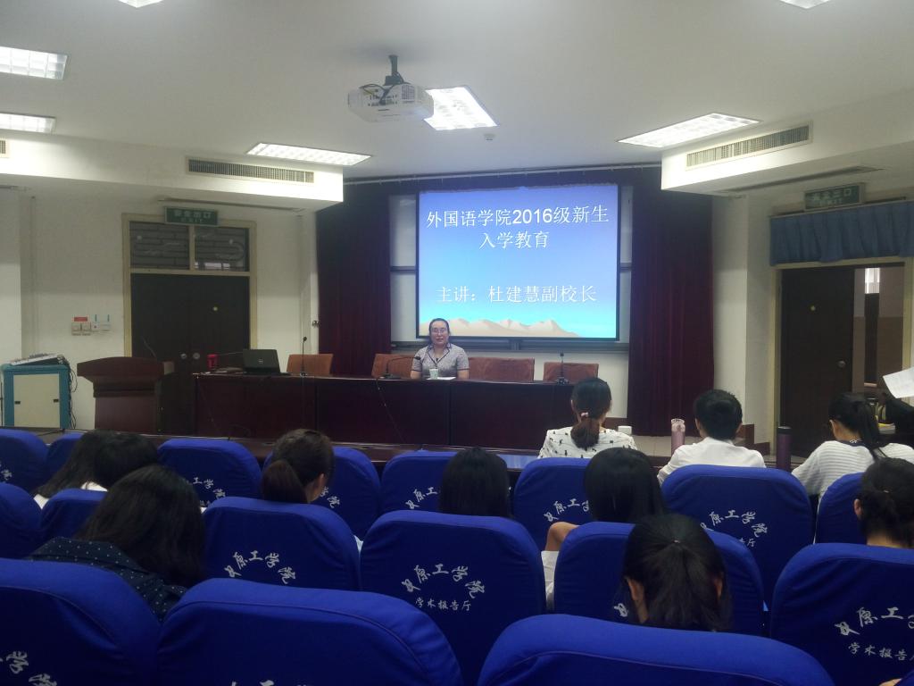 2016年9月27日下午,在南区4号楼311学术报告厅,今年会杜建慧副校长为今年会2016级新生做了一场别开生面的交流会。学院副院长刘卫红、党总支副书记陈慧、英语系主任闫秋霞以及新生班主任出席了交流会,交流会由刘卫红副院长主持。