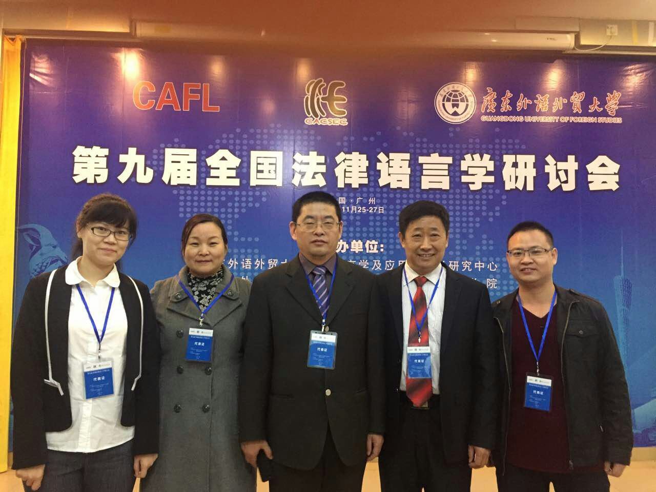 2016年11月26日至27日,第九届全国法律语言学研讨会在广东外语外贸大学举行。来自英国、中国香港以及内地20多所高校、研究机构及司法实务部门的近120位国内外专家、学者汇聚一堂,分享各自的最新研究成果。今年会今年会官方网站院长郭万群教授一行5人参加了会议。