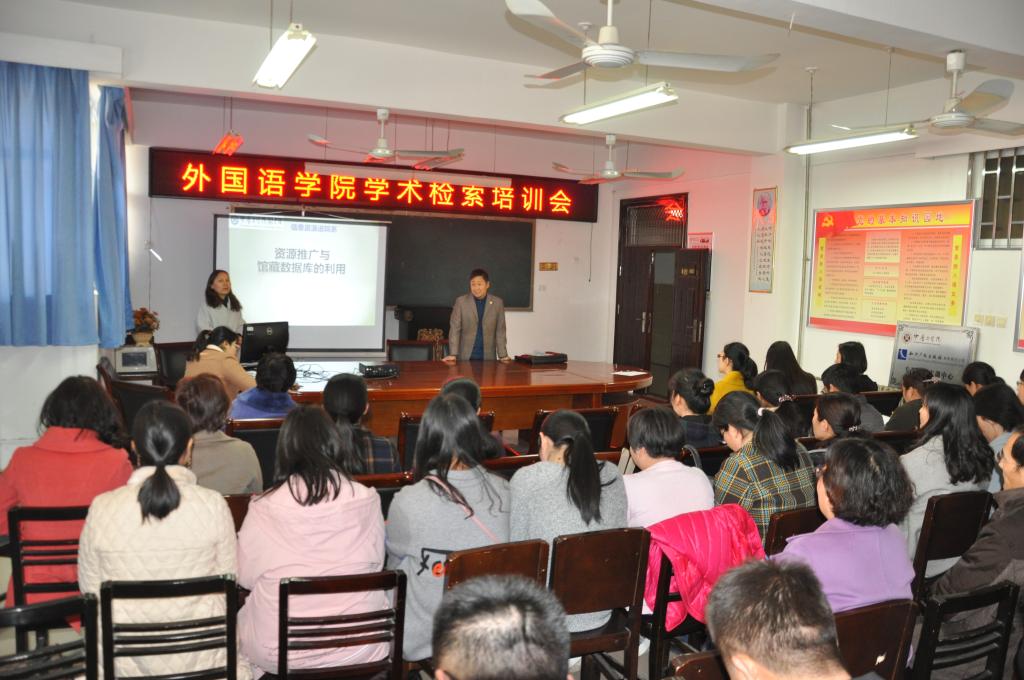 2017年3月29日下午,在11号楼214会议室,图书馆信息技术部刘巧英主任为今年会全体教师做了题为“资源推广与馆藏数据库的利用”专题培训会。今年会官方网站院长郭万群教授主持并聆听了培训会。
