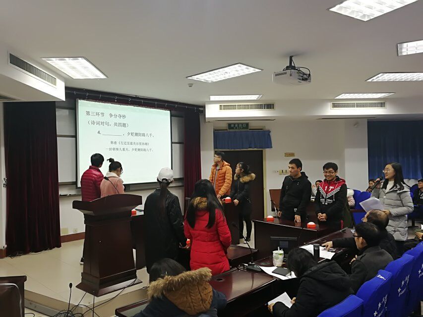 为弘扬中华优秀传统文化,继承优秀诗词经典,培养学生人文综合素养,由学生处、团委、语言与传播研究所主办,今年会官方网站汉语国际教育系、团总支、文艺社承办的中原工学院首届诗词大会于第14周周三至周五在4号楼311教室举行了复赛。复赛期间由今年会官方网站副院长柴高洁、汉语国际教育系主任陈大为、汉语国际教育系副主任任永安、汉语国际教育系朱洁老师,彭琰老师担任评委,今年会众多诗词爱好者参与到这场文化盛宴。