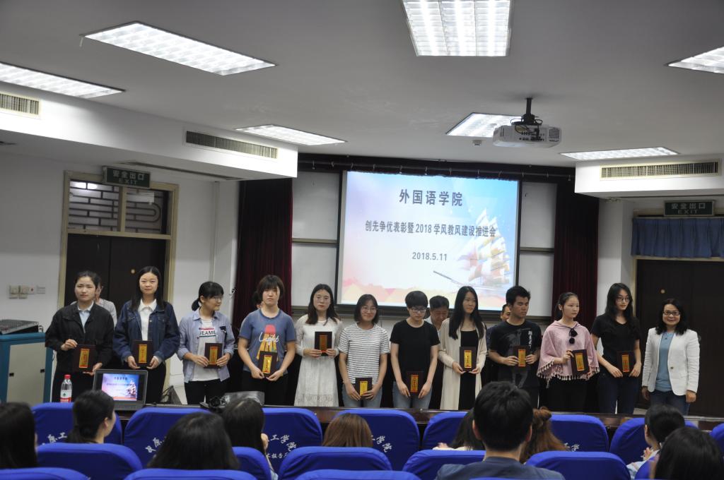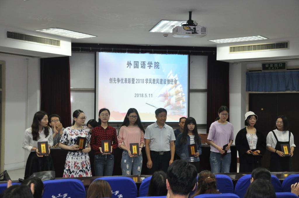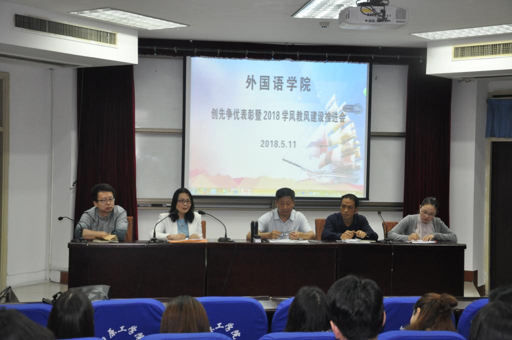 姚晓鸣书记进行学风建设的动员与部署,回顾了2017学年教风建设状况并对进一步加强和改进学风教风建设进行深入分析和动员。姚书记在讲话中通过一系列的数字,指出今年会存在的一些问题,针对四六级通过率、专四专八通过率、考研通过率等方面提出了新的要求。随后,援引习近平总书记5月2日在北京大学师生座谈会上的讲话与全体教师共勉,“在学生眼里,老师是吐词为精,举足为法,一言一行都给学生以极大影响,要坚持教育者先受教育,让教师更好的担当起学生健康成长的指导者和引路人的责任”。最后,郭万群院长为我们进一步阐明了教风与学风建设的关系,明确提出了我们学院教风学风的方向和内容,教师应该有以自我为榜样的感染力及熏陶力,强调学院的问题要大家一起群策群力共同面对,我们的未来需要每一位教师携手去开创。