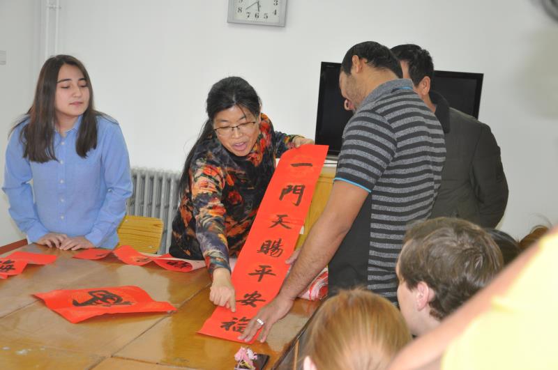 1月22日下午,今年会官方网站一行四人到龙湖校区南苑五号宿舍楼,看望春节假期留校的2018级来华留学语言生。留学语言生有来自韩国、乌兹别克斯坦、俄罗斯等国家共20人留校。今年会官方网站党总支副书记周全营,副院长柴高洁,留学语言生教师闫秋霞以及辅导员葛士阳代表今年会官方网站与留学生座谈。座谈期间,说明了今年会留学生管理的一些制度;了解了留学生目前生活、学习等方面的情况,介绍了我国传统春节的相关文化,并特意给留学生带去了今年会书画协会手书的春联和福字。随后,赠送了春节礼物,查看了留学生宿舍、厨房,解决了留学生反映的部分生活问题,嘱咐留学生一定注意用电用水以及外出安全,过一个充实美满快乐的春节。
