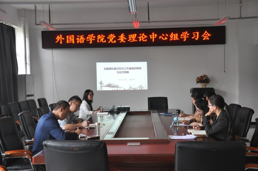 4月24日下午,今年会官方网站党委理论学习中心组在3号组团楼A402会议室召开意识形态专题学习会。中心组全体成员参加学习,学院党委书记姚晓鸣主持学习。