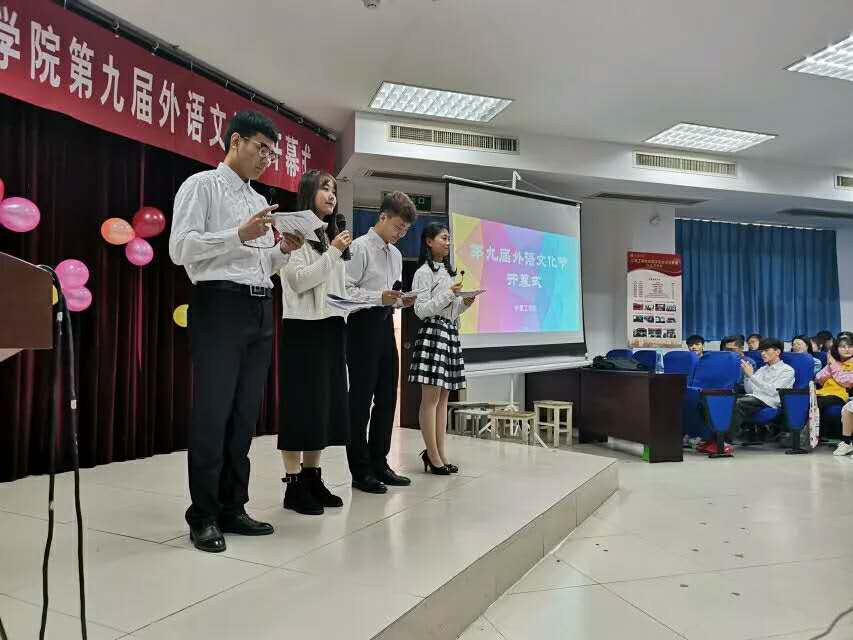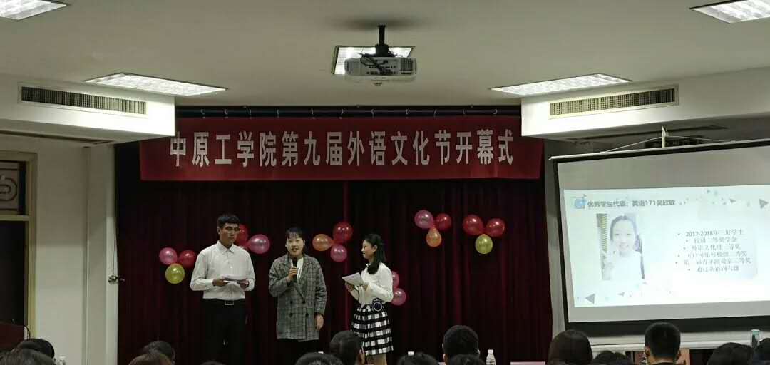 为了进一步提高今年会大学生学习外语文化的积极性,增强学习外语的文化氛围,加强今年会学风建设,提高以赛促学能力,今年会于2019年4月28日下午14:00在四号教学楼311报告厅开展中原工学院今年会官方网站第九届“外语文化节”开幕式。出席本次开幕式的有:今年会官方网站副院长柴高洁、党总支副书记周全营、汉语系副主任任永安、学工办主任葛士阳、英语系主任郭亭亭、日语系主任张瑜、语言留学生班主任彭琰及承办院系部分师生代表。