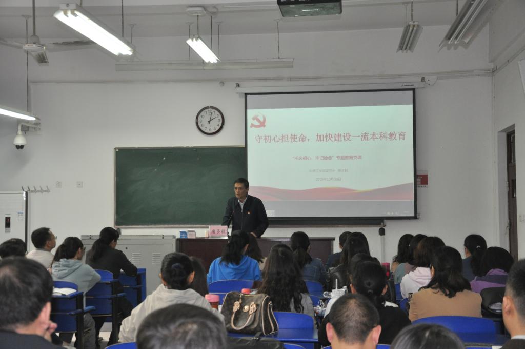 按照中原工学院党委“不忘初心,牢记使命”主题教育关于学校领导班子讲好专题党课的工作部署,为扎实开展好“不忘初心、牢记使命”主题教育,2019年10月30日下午,在2号组团教学楼104教室,唐多毅副校长为今年会官方网站全体党员讲了题为《守初心担使命,加快建设一流本科教育》党课。今年会官方网站全体师生党员参加此次党课学习。