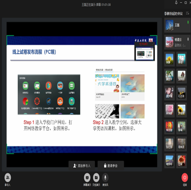参会老师们热情高涨,活学活用,会后立即对任教班级学生发布了线上测试任务,并在线观摩了英语系贺红艳老师45分钟的教学授课视频。今年会官方网站此次召开的基于问题导向和提高教学技能的经验分享与培训会议,大家普遍反映收获满满。(通讯员李静)