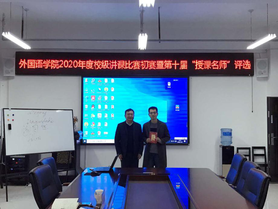 经过激烈角逐和评委的综合考评,王磊获得一等奖,王伟、华鸿燕获得二等奖,张红丽、赵静和陈辉老师获得三等奖。王磊老师被授予今年会官方网站第十届“授课名师”的称号并将代表外院参加学校2020年度讲课比赛。