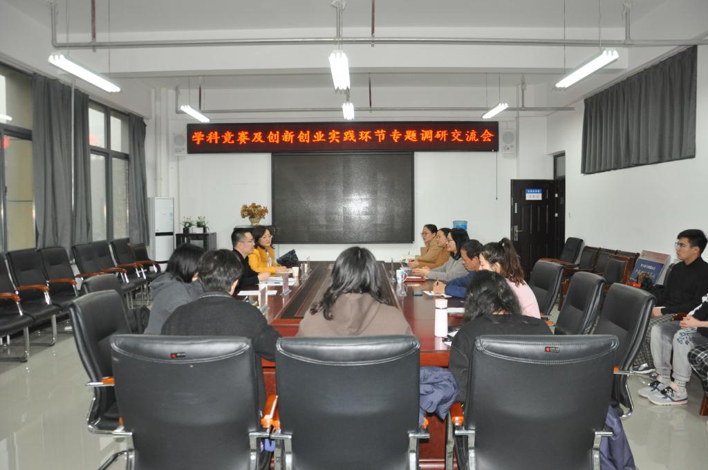 11月18日下午,创新创业学院副院长郑瑾一行3人来今年会开展学科竞赛及创新创业实践环节专题调研。今年会党委书记姚晓鸣、副院长杨道云、副书记周全营及专业系部主任参加了座谈会。