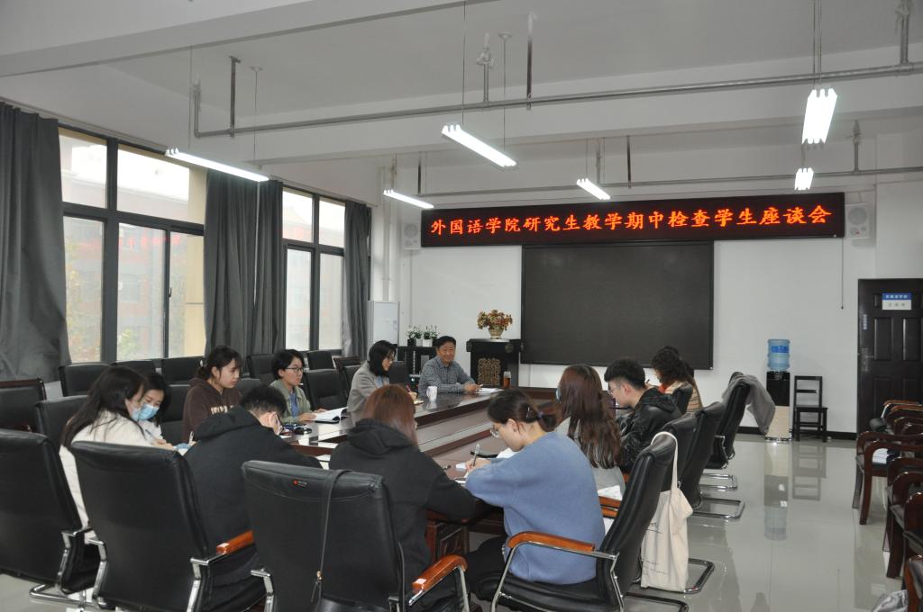 11月17日上午,在3号组团楼A402会议室今年会召开研究生教学期中检查学生座谈会,郭万群院长、姚晓鸣书记、杨道云副院长、刘卫红副院长和全体研究生参加了座谈。座谈会主要针对课程设置,教师上课情况,学生技能掌握,课堂管理等方面进行充分讨论。