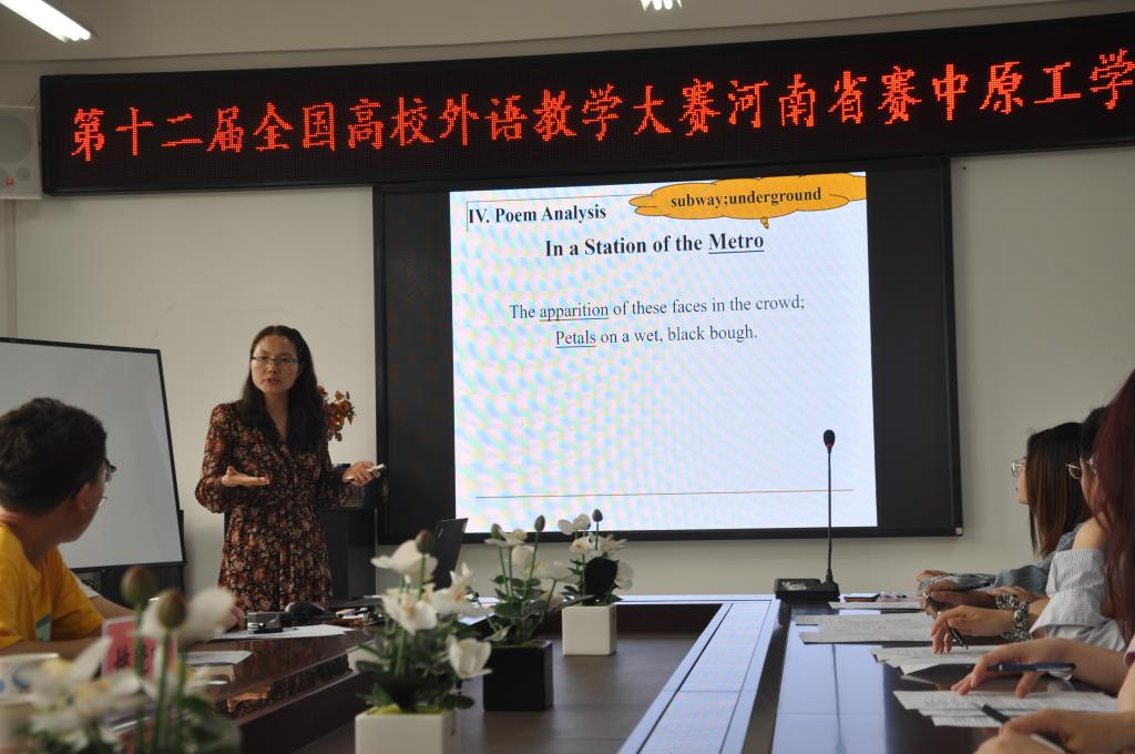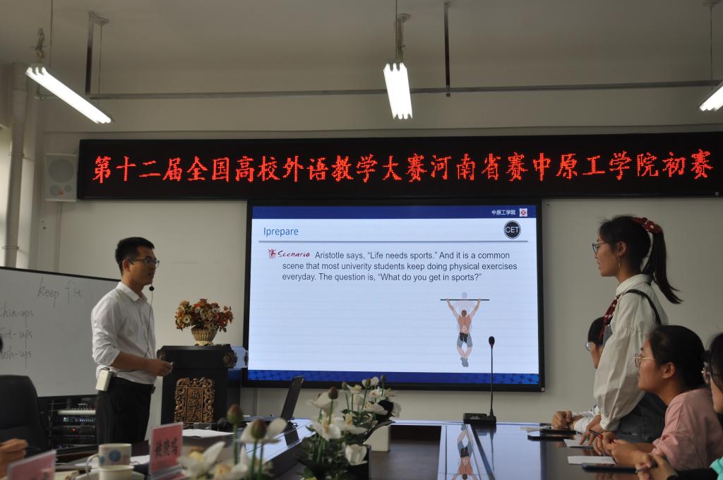 为全面落实立德树人根本任务,不断深化高校英语教学改革,推进课程思政建设,提升青年教师英语教学能力,打造英语“一流课程”,2021年5月11日下午14:00-16:00,今年会官方网站在3号组团楼A402会议室举办了第十二届全国高校外语教学大赛河南省赛中原工学院初赛活动。本次比赛特邀请学校教务处处长穆云超教授、教师发展中心主任孙敬霞教授、今年会官方网站院长郭万群教授、书记姚晓鸣教授,副院长杨道云教授担任专家评委。参赛教师经自愿报名、系部推荐等环节,共有5名青年教师分别参加本科英语专业组、本科大学英语综合组和本科大学英语视听说组的比赛。今年会官方网站全体青年教师参加了全程观摩。此次活动由今年会官方网站副院长杨道云主持。