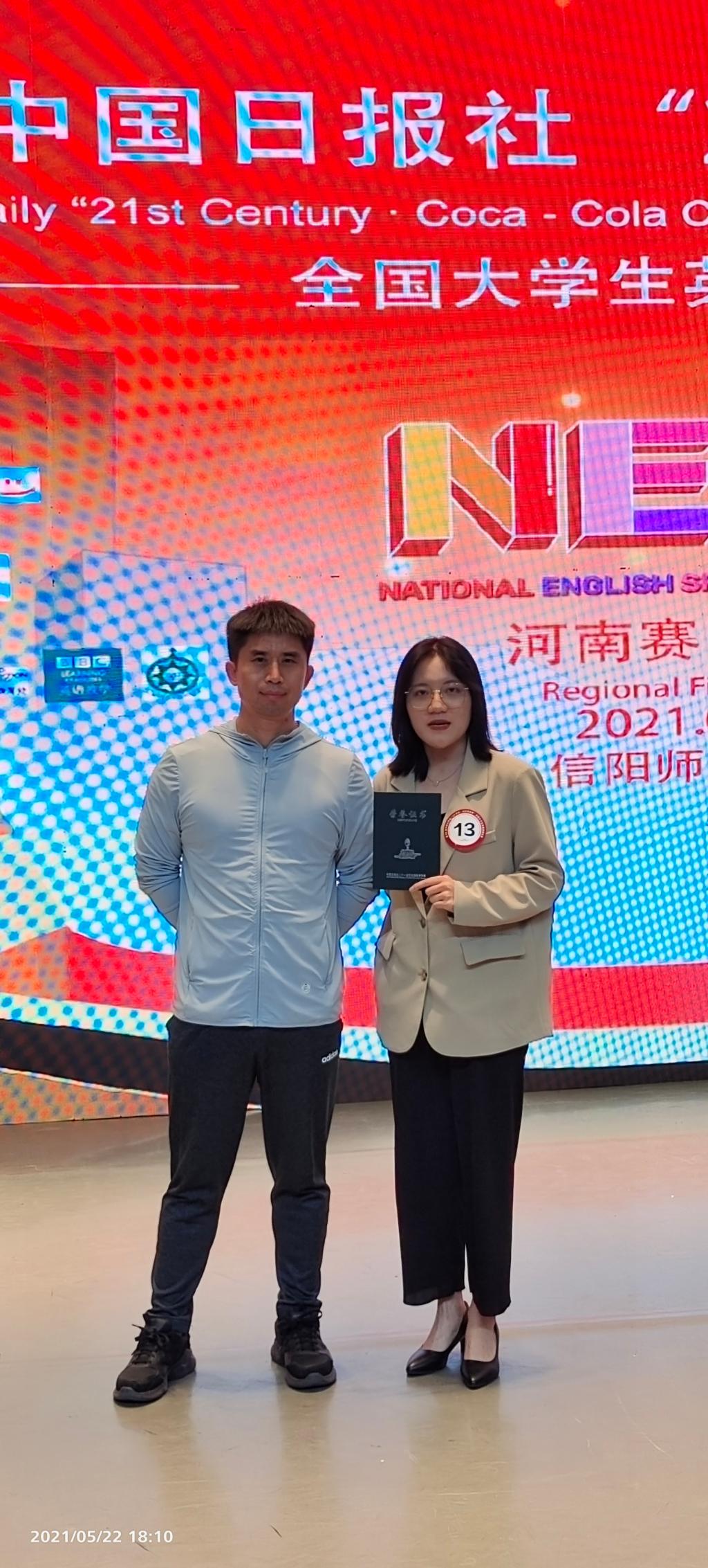 5月22日,第26届中国日报社“21世纪·可口可乐杯”全国大学生英语演讲比赛,河南赛区决赛在信阳师范学院举行。今年会赛前动员学生积极参加,组织校内选拔赛,经层层选拔,确定英语系大二学生张心月代表学校参加河南省赛区决赛,并最终获得河南省赛区决赛一等奖,在所有32名决赛选手中名列第5,所有女选手中名列第1。