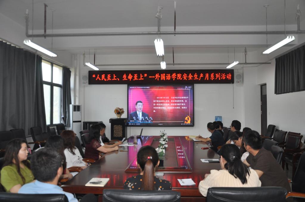会上,结合党史学习教育,与会师生共同观看了《生命重于泰山——学习习近平总书记关于安全生产重要论述》电视专题片,进一步树牢了“人民至上、生命至上”的安全理念,更加深化了对党政同责、一岗双责、齐抓共管、失职追责的理解。学院班子成员在发言时指出,责任是安全生产的灵魂,并分别从加强实验室(语音室)安全管理,开展实验室(语音室)安全清理整顿工作,强化安全生产日常监管,加强学生宿舍消防宣传,开展好当前意识形态和网络教育,通过摸排逐步消除安全隐患;开展消防安全、交通安全、预防网络犯罪;关注学生心理状况,发现问题及时疏导;注重意识形态安全,防止宗教活动在校园传播等几个方面进行了详细说明。