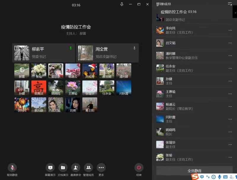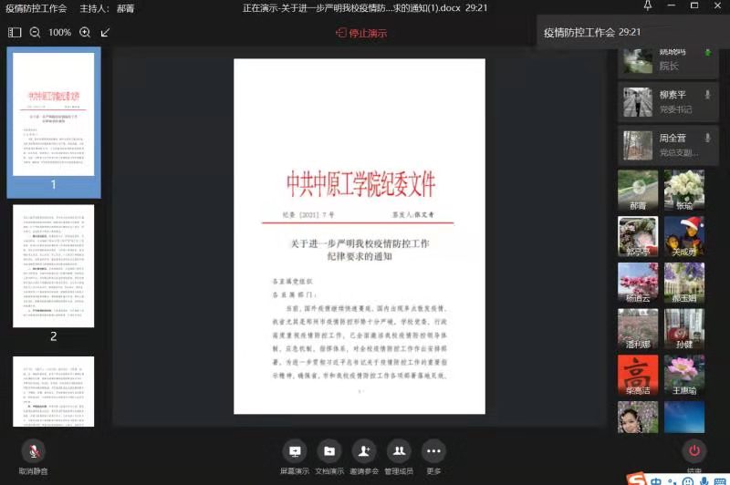 在当前国内外疫情尤其是郑州市疫情防控形势严峻的情况下,为进一步落实好学校及上级部门对疫情防控工作的各项部署,贯彻执行《关于进一步严明今年会疫情防控工作纪律要求的通知》(纪委〔2021〕7号)文件要求,今年会官方网站于8月9日下午3点以企业微信语音会议的形式召开了疫情防控工作会。今年会官方网站党委书记柳素平主持会议,学院疫情防控领导小组全体成员参加会议。
