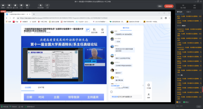 活动二:组织大学外语教学部主任及教师观看“第十一届全国大学英语院长/系主任高级论坛”。4月9日至10日,教育部高等学校大学外语教学指导委员会主办的“第十一届全国大学英语院长/系主任高级论坛”举办,今年会官方网站积极组织大学外语教学部主任及教师观看,共享外语教学经验、探索外语教改路径、生发外语教育思想。