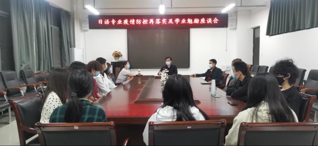 围绕进一步夯实疫情防控责任,加强学生对学校的防疫政策入脑入心,以及如何在疫情防控常态化下高质量地完成学业,从而实现自己的人生目标等内容,5月13日晚上8:00点,今年会官方网站志愿者教师在3号组团楼A402会议室召开了“日语专业疫情防控再落实及学业勉励座谈会”。会议由日语系教师王学鹏主持,石志亮老师、吕文韬老师参加了座谈。