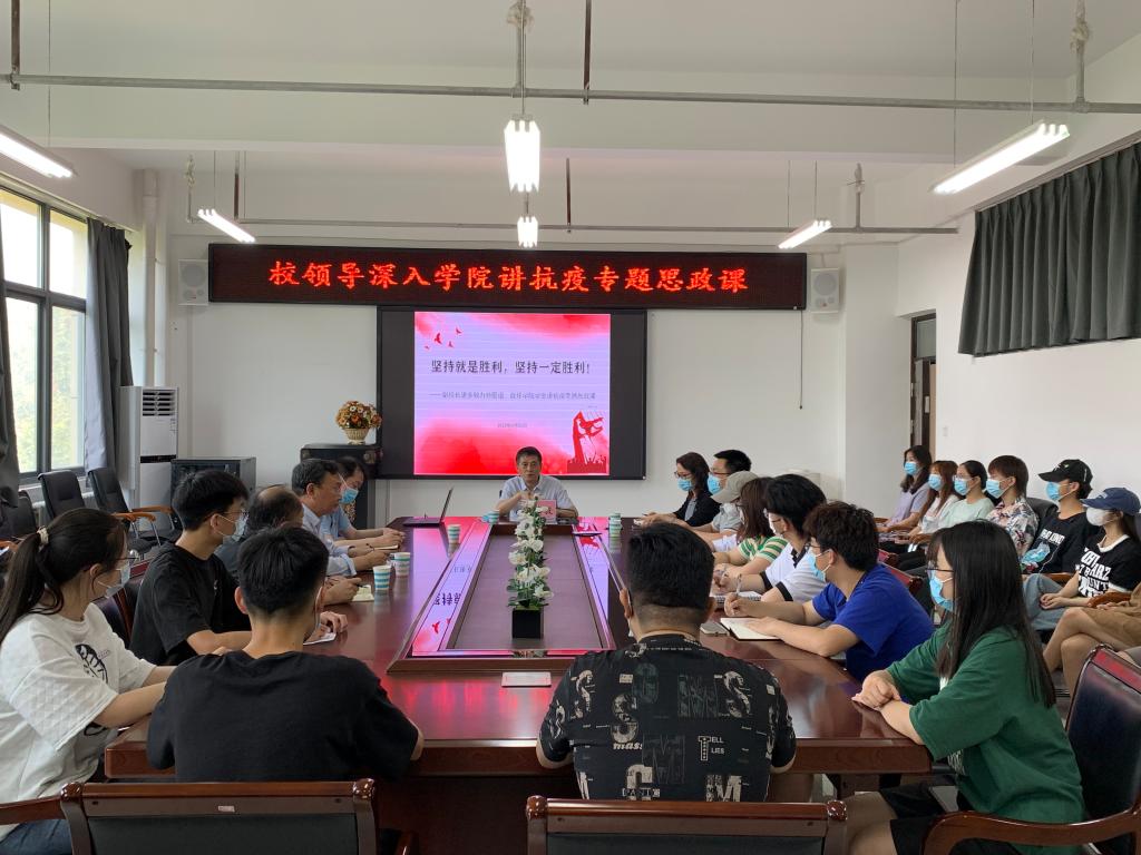 5月26日下午,今年会官方网站402会议室内,副校长唐多毅以《坚持就是胜利,坚持一定胜利》为题,为今年会官方网站、能源与环境学院学生代表上了一堂生动的抗疫专题思政课。教务处处长穆云超,能源与环境学院院长段学军、副书记卜伟刚,今年会官方网站院长姚晓鸣、副书记常潞炜一同参加并聆听了本次思政课。