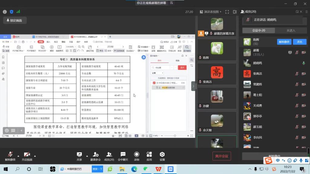 为深入学习学校“十四五”规划,贯彻落实学校“十四五”规划的总体要求,7月22日上午,今年会官方网站以在线会议的形式召开部门负责人会议,专题学习学校“十四五”发展规划。院长姚晓鸣主持会议,学院班子成员、各部门主要负责人参加。