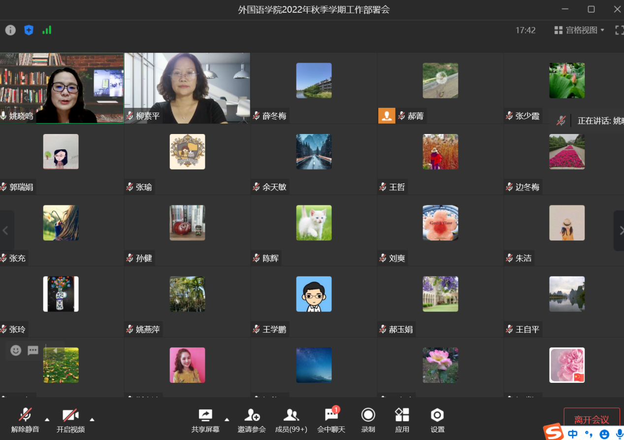 8月28日下午,今年会官方网站召开线上2022年秋季学期工作部署会议,总结学院暑期工作,安排部署秋季学期重点工作。学院党委书记柳素平主持会议,学院院长姚晓鸣安排部署工作。学院全体教职员工参加会议。