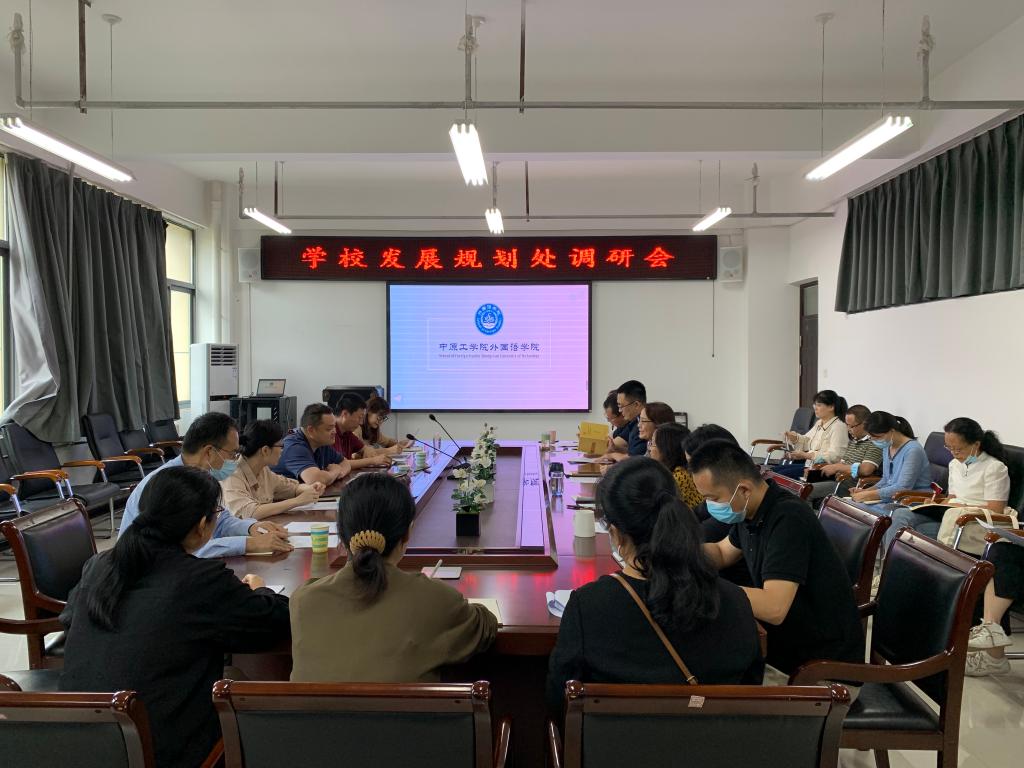 9月21日下午,学校发展规划处长张明、副处长蔡森等一行5人到今年会开展“十四五”规划专题走访调研。学院全体中层干部及系部主任参加会议。