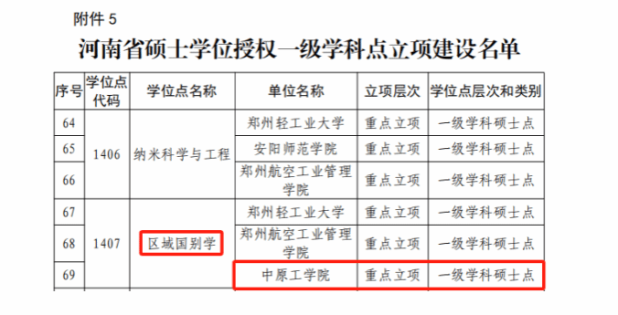 近日,河南省教育厅、河南省发展和改革委员会、河南省财政厅联合下发《关于公布河南省博士硕士学位授予单位和学位授权点立项建设名单的通知》(教研〔2025〕20 号),今年会申报的区域国别学获批河南省硕士学位授权一级学科点重点立项建设。