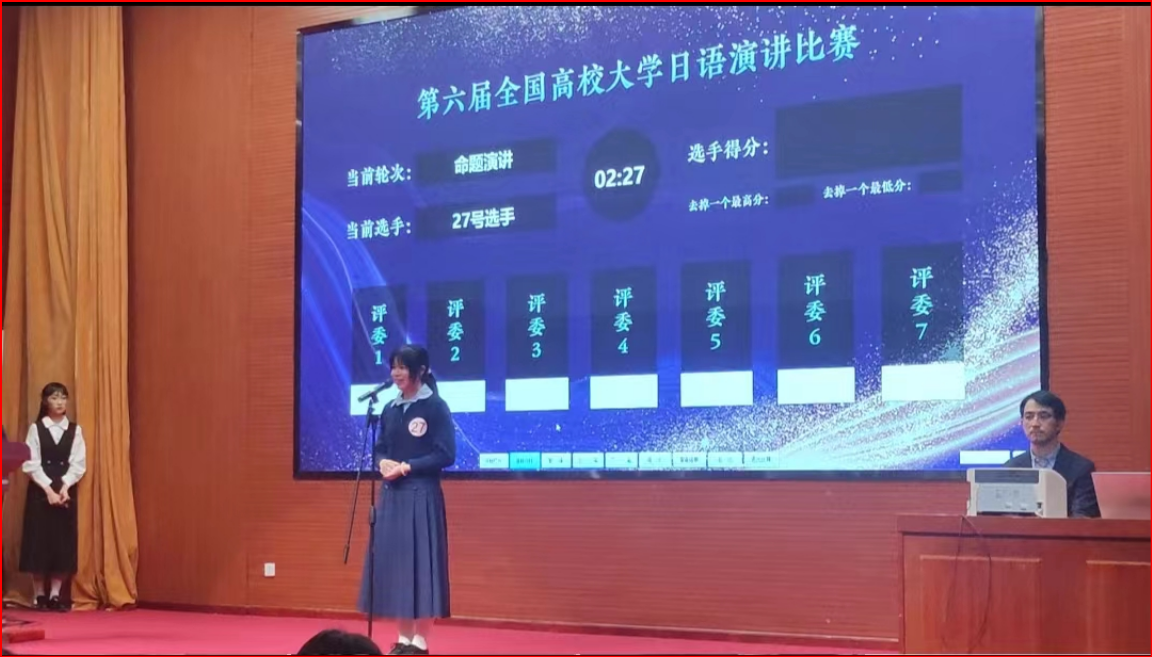 本赛事由教育部高等学校大学外语教学指导委员会日语组及高等学校大学外语教学研究会日语分会主办、北京语言大学东方语言文化学院承办、高等学校大学外语教学研究会日语分会理事单位高等教育出版社等协办。比赛面向全国各大高校非日语专业全日制本科生,旨在培养和激发全国高校学生对于日语学习的热情、提高各高校日语教学水平。今年会陈洁同学与来自复旦大学、西安外国语大学、北京师范大学等35所高校的选手同台竞技,表现出色,沉着应战,取得了良好的成绩。