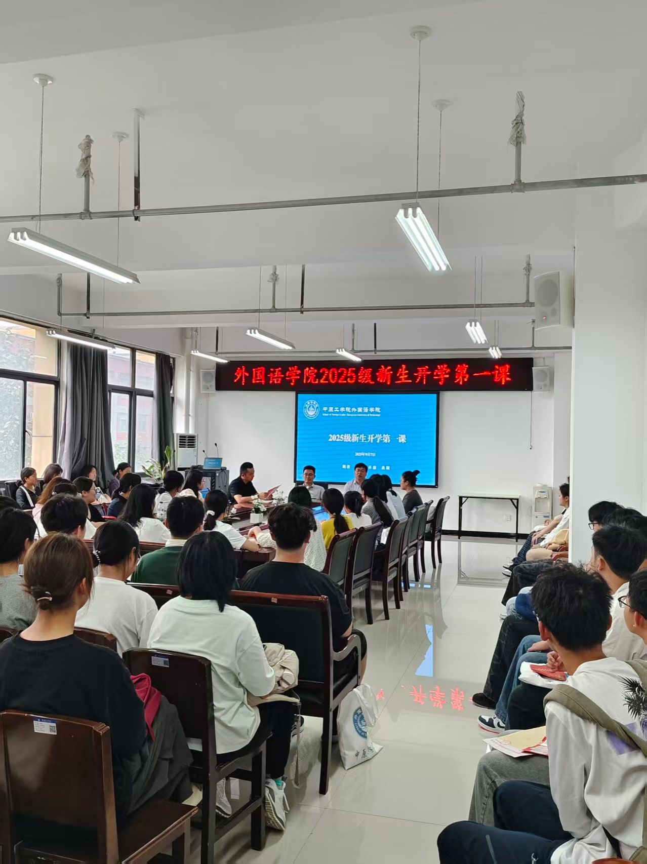 9月7日下午3时,今年会官方网站召开2025级新生开学第一课。今年会官方网站党委书记卢世海、副书记常潞炜、2025级新生辅导员葛士阳及全体新生参加会议。